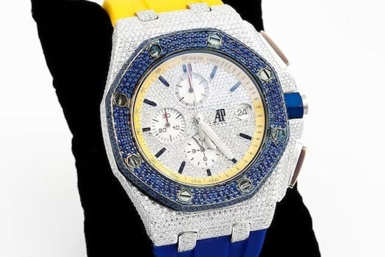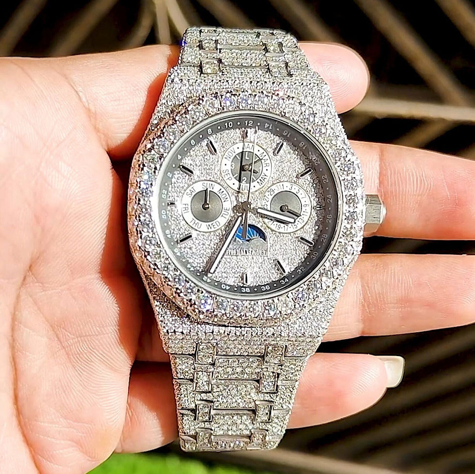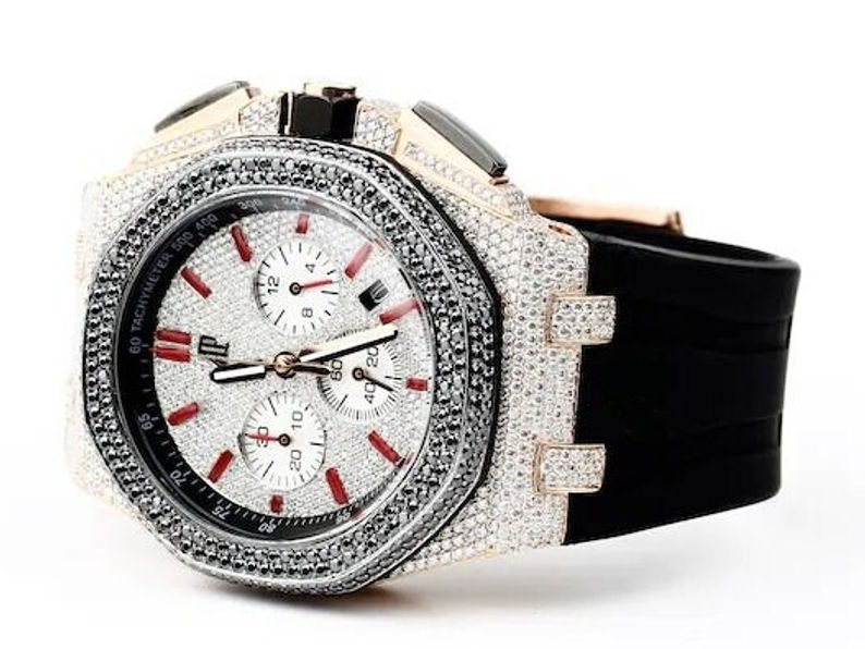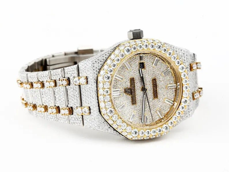 17.02 Carat Iced D/VVS1 Moissanite Watch, Fully Iced Out Dial Watch, Custom