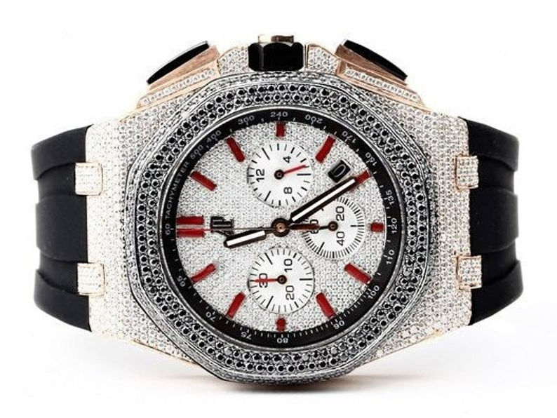 20 CT VVS Certified Moissanite Diamond Watch For Men, Fancy Custom Made Rou