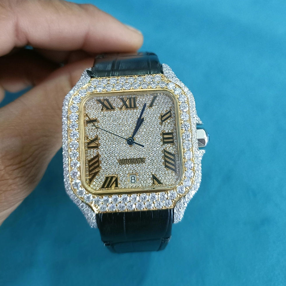 Iced Out VVS Moissanite Diamond Gold Finish Roman Numerals Men's Wrist Watc