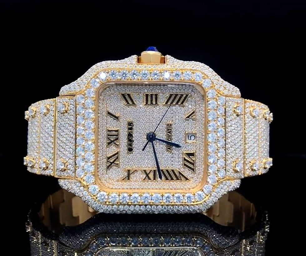 Cartier Santos Automatic Moissanite diamond Watch | Iced Out Watch